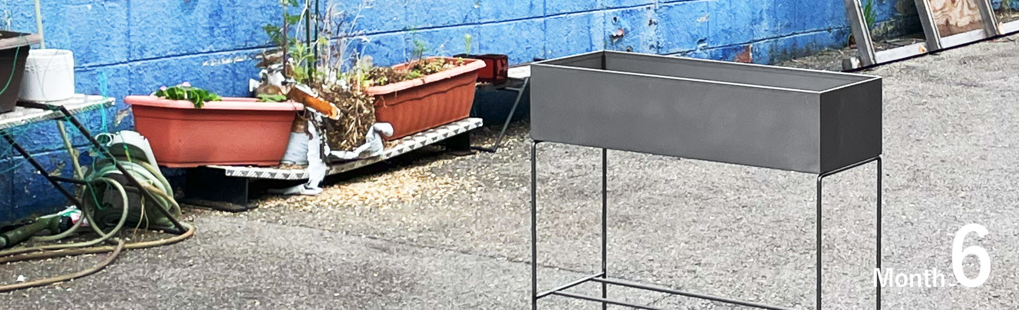 鉄の素材感を活かしたプランタースタンドが、時間の経過とともにどのように表情を変えるのか…。